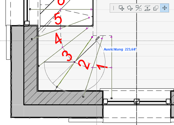 Optional wird die 2D-Silhoutte einer Person (Länge 190cm, Breite einstellbar) in Frontal- und/oder Seitenansicht dazu geblendet um ein Gefühl für die Abstände zu vermitteln. Der Stufenbereich für diese Darstellung ist einstellbar. Jeder Rahmen hat im Grundriss eine Repräsentation aus einer Linie, die auf den Kreuzungspunkt Lauflinie/Stufenvorderkante abgesetzt und über Fangpunkte auf die Drehung der Stufenkante eingestellt wird. Die Darstellung in 3D kann auf der Stufenvorderkante oder Stufenmitte (plus halbe Steigungshöhe) gewählt werden.