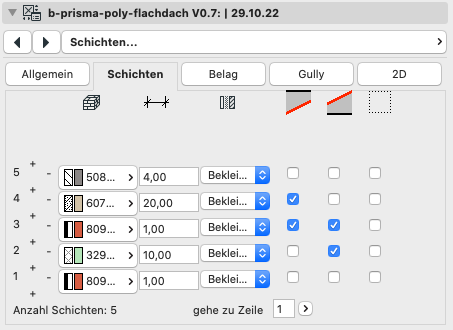 Das Bibliothekselement dient dem Erstellen von mehrschichtigen Gefälledämmungen auf Flachdächern.