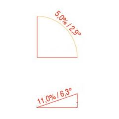 Symbolik zur Darstellung von Bauteilneigungen: Steigungsdreieck und Winkelbogen. Je als Symbol fester Größe oder nach tatsächlicher Neigung. Automatische Beschriftung in Grad oder Steigungs-%.Berechnung nach Festem Winkel, festem Steigungsverhältnis oder Objektabmessung. Damit graphisch editierbar und zum Messen tauglich. - Gefällepfeil:
