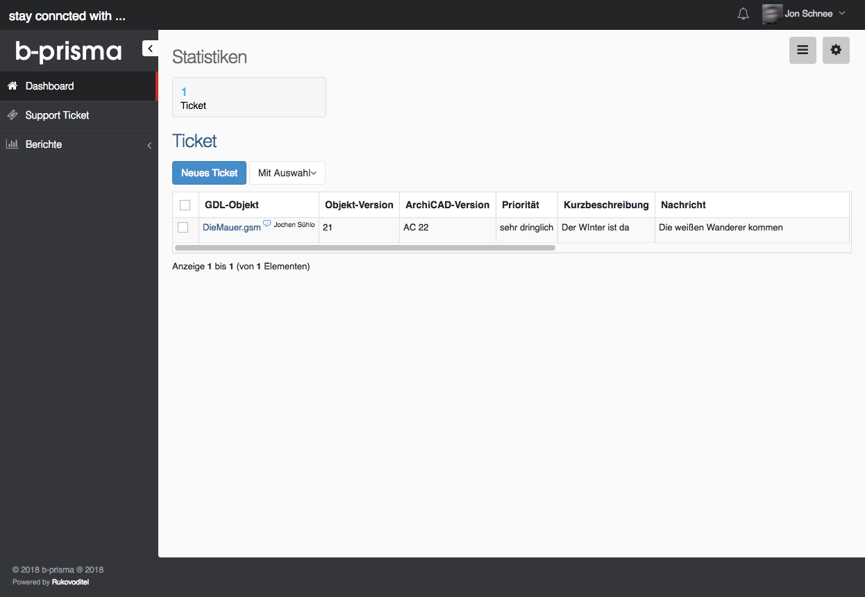 Bild 2: User Interface für Anwender des Ticket-Systems: Dashboard