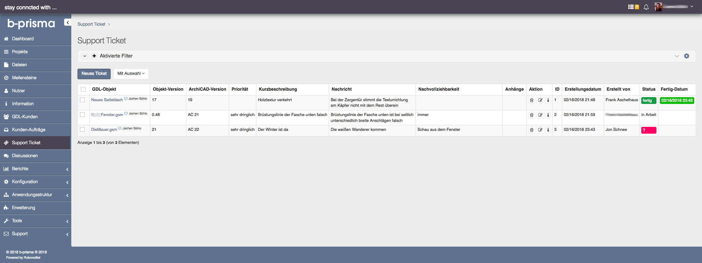 Ich selber bin Softwareentwickler für BIM-Objekte und habe damit folgende unterschiedlichen Funktionen erstellt: Kundendatenbank, Produktdatenbank, Objekt-Katalog mit Release-Notes, Projekt-Management mit Todo-Liste und Ticketsystem, projektunabhängiges Ticketsystem.