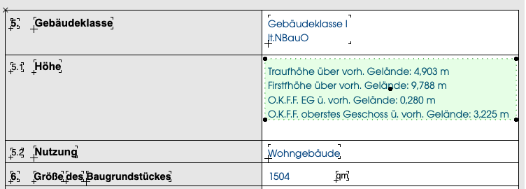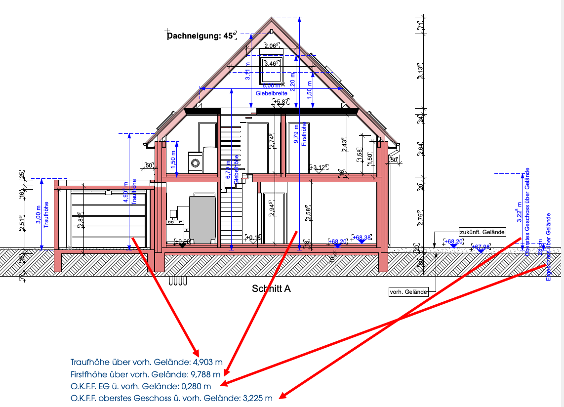 Diese Höhenangaben trage ich neben der Traufhöhe, Firsthöhe und O.K.FF.-EG-Höhe als Text in das Baubeschreibungsformular ein.